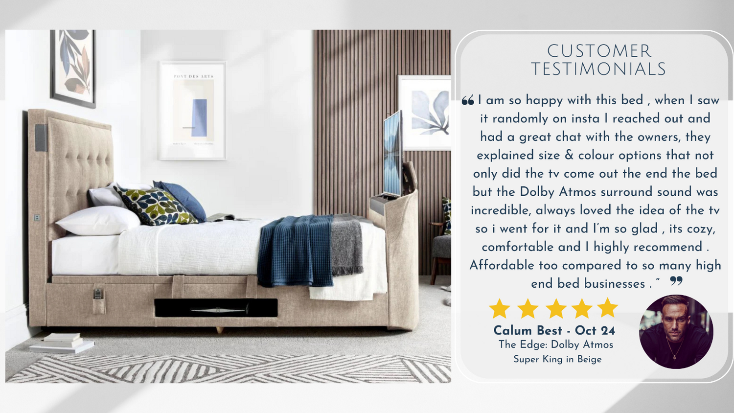 Specialists in TV Beds, Dolby Atmos & Adjustable Beds – Quality You Can Hear, Comfort You Can Feel, Service You Won’t Beat.