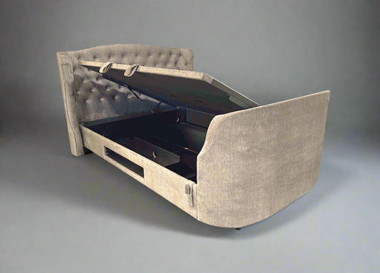 Exclusive to TVbedsnorthwest.co.uk , the Titan TV Bed is in a league of its own when it comes to TV Bed frames. With its superior design, construction and comfort features, the Kaydian Titan Ottoman TV bed is the perfect choice for anyone that wants luxury combined with quality craftsmanship and, of course, the latest state-of-the-art tech.