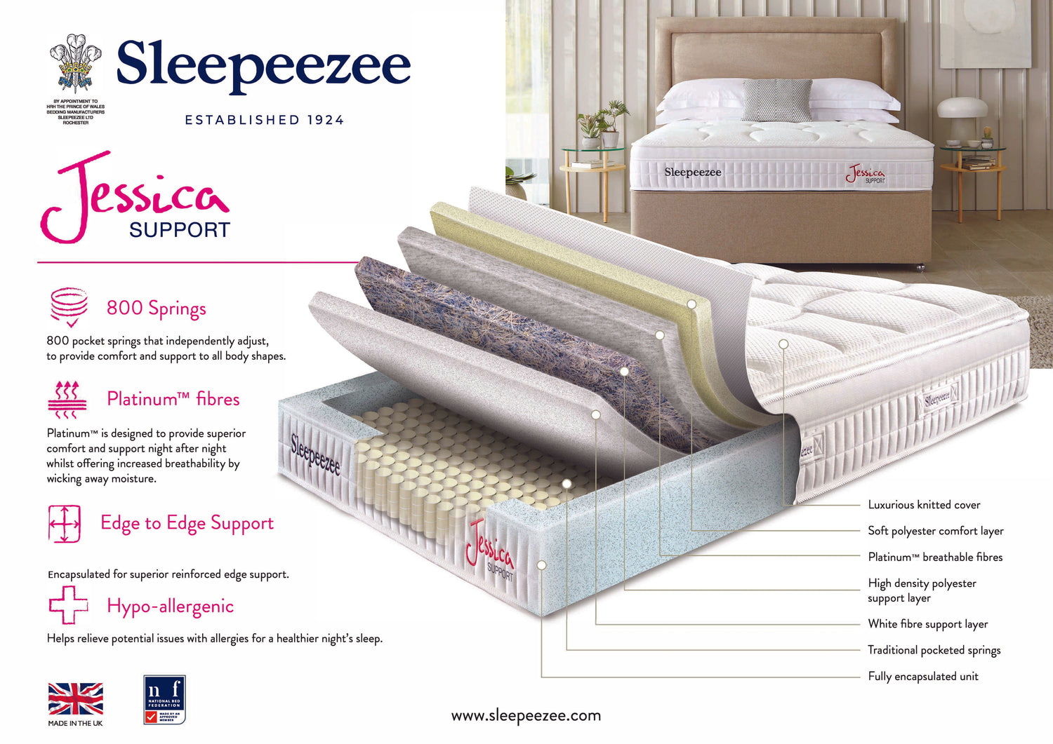 With 100 years of experience in making beds, Sleepeezee mattresses are produced in Kent and have the Royal seal of approval for HRH the Prince of Wales.