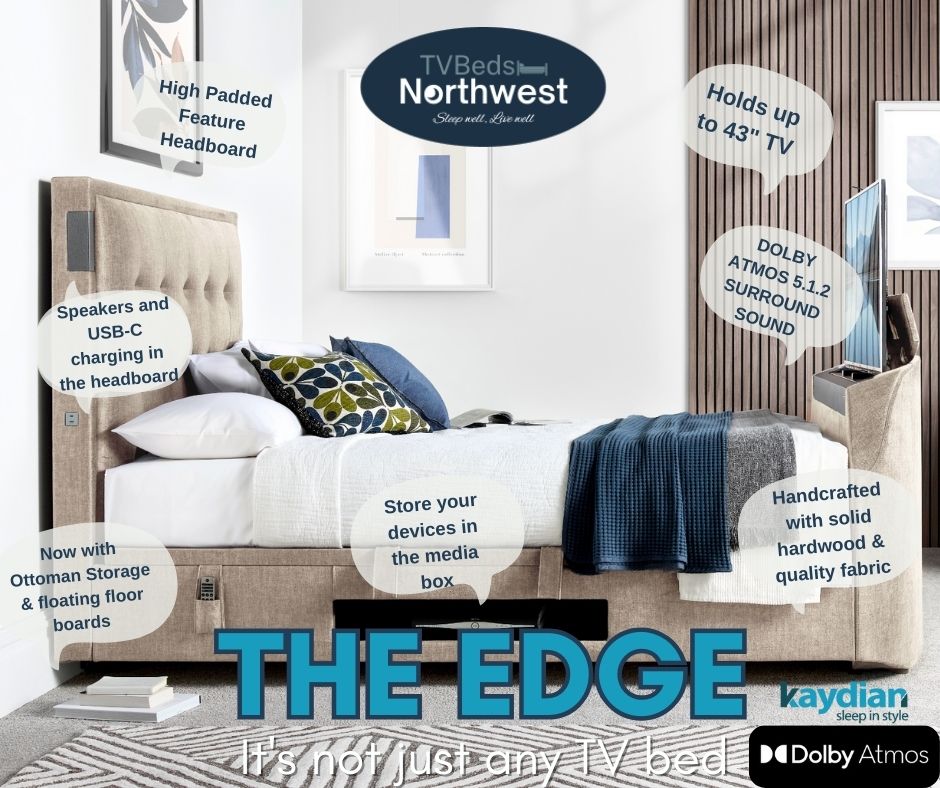 Together with Kaydian Design, TV Beds Northwest presents The Edge TV Bed frame with ottoman storage and now Dolby Atmos surround sound system. This is the first of an upcoming line of high-end TV beds coming to market in 2024. When there are so many TV beds on the market, what makes this one stand out? You'll get the same high quality TV bed frame as usual with Kaydian but now with Dolby's Atmos technology.